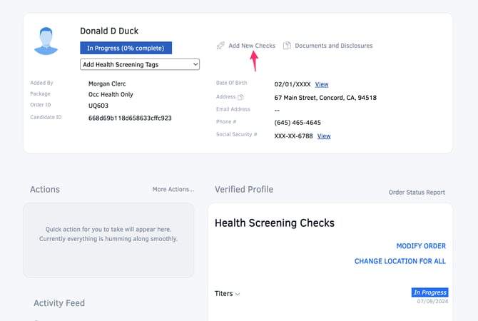 Once a file has gone into progress, you will be able to add new items to the file with Add New Checks. (This can be performed on files in Clear, Reviewed, Review Needed Pre-Adverse or Adverse status as well).