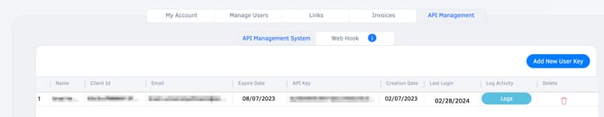 From here, you can create WebHooks as well as add API keys and disable API Keys.