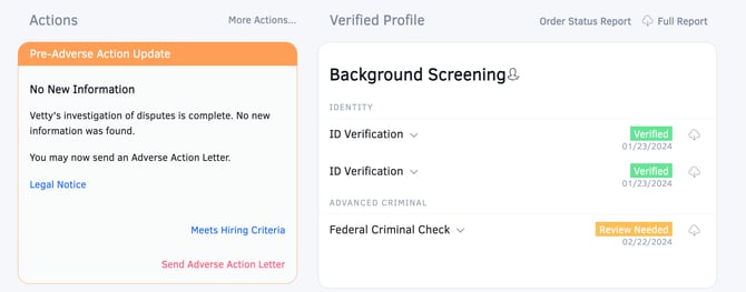 Sometimes background checks surface information that could impact a hiring decision and when that happens, compliance matters. Before taking any action, you’re required to notify the candidate with a Pre-Adverse Action Notice.